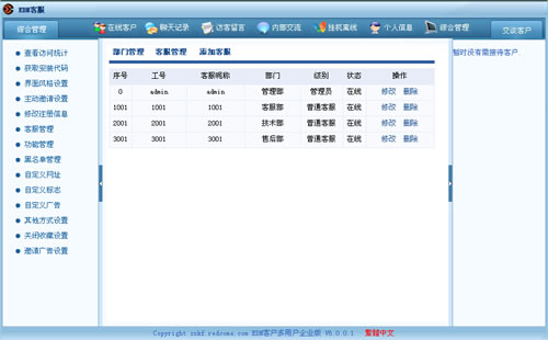 多席位管理:無限客服工號,支持多人同時(shí)在線,系統(tǒng)根據(jù)線路繁忙程度自動(dòng)分配工號。