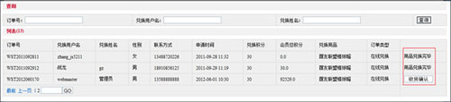 商品收貨:兌換訂單發(fā)完貨后,由會員確認收貨,會員確認收貨后即此訂單交易完成。在一定時期內(nèi)如會員未做收貨確認,管理員可修改收貨狀態(tài),完成訂單交易。