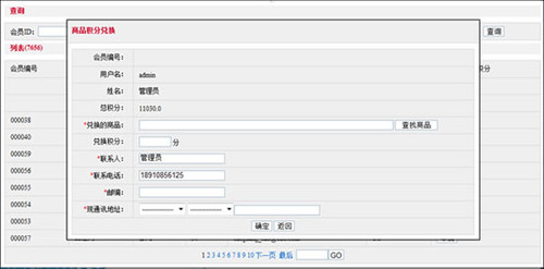管理員可以后臺查看所有注冊會員積分,并替會員兌換商品。