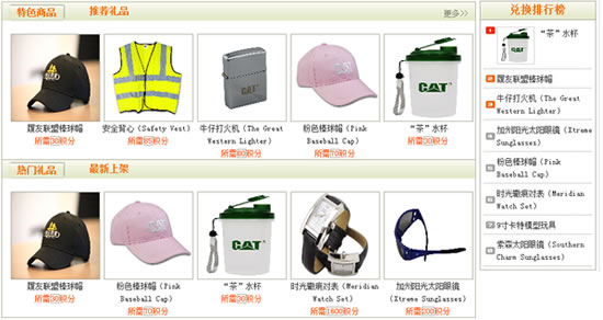 前臺用戶在“積分商城”下可查看所有積分商品,展示的商品可包括:特色商品、推薦禮品、熱門禮品、最新上架、兌換排行榜。
