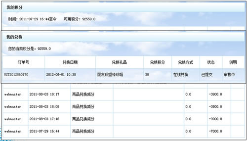 會員通過用戶名及密碼登陸后進入“個人中心”即可查看自己的積分及兌換記錄。